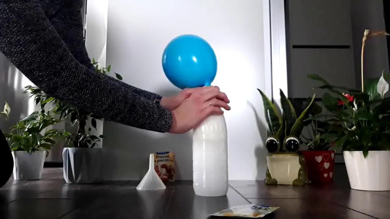 Co się dzieje? Kiedy proszek do pieczenia (wodorowęglan sodu) spotyka się z octem (kwasem octowym), rozpoczyna się gwałtowna reakcja chemiczna, w której wydziela się duża ilość dwutlenku węgla. Ten gaz, nie mając gdzie uciec z zamkniętej butelki, zaczyna rozprężać się i wypełniać balonik, sprawiając, że ten pompuje się sam! To doskonały przykład na to, jak niewidzialne gazy mogą zajmować przestrzeń i wywierać ciśnienie.