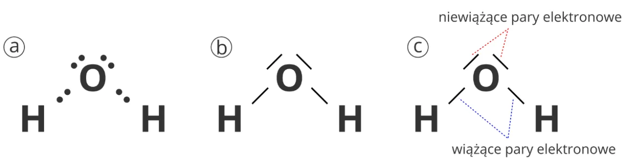 Wbrew pozorom, cząsteczka wody nie jest liniowa. Ma ona charakterystyczną budowę kątową, często określaną jako V-kształtna. Ten specyficzny kształt wynika z obecności dwóch wolnych par elektronowych na atomie tlenu, które, zgodnie z teorią VSEPR (odpychania par elektronowych powłoki walencyjnej), odpychają wiązania H-O. To odpychanie sprawia, że atomy wodoru nie układają się w jednej linii z atomem tlenu, ale są "zgięte", tworząc kąt.